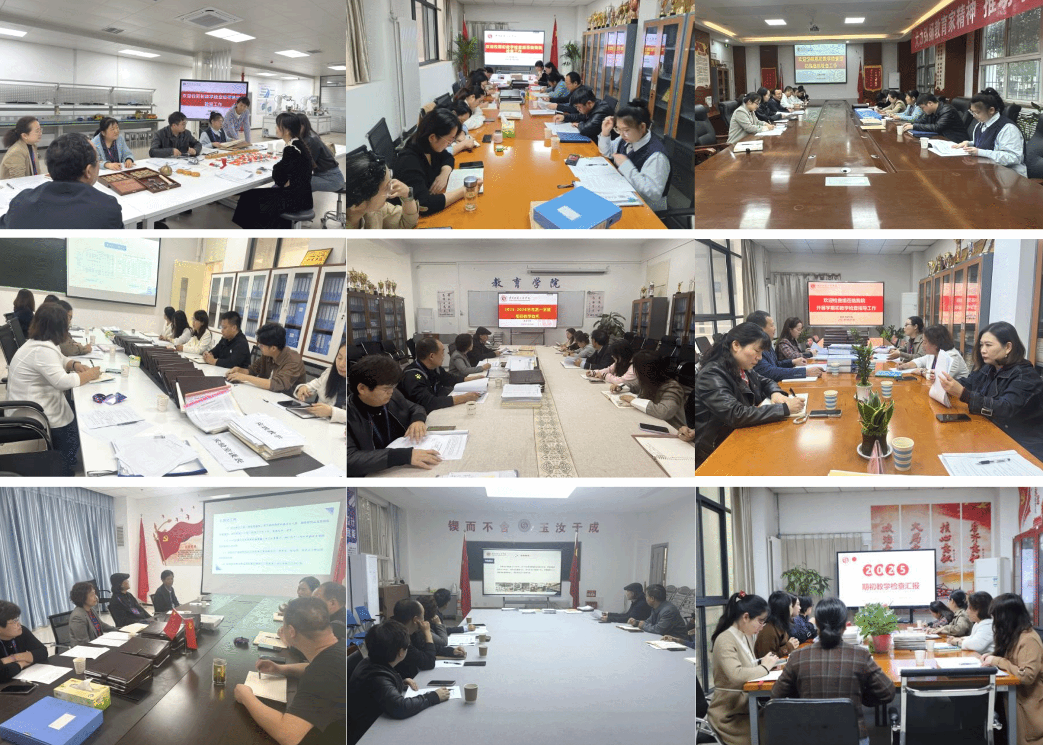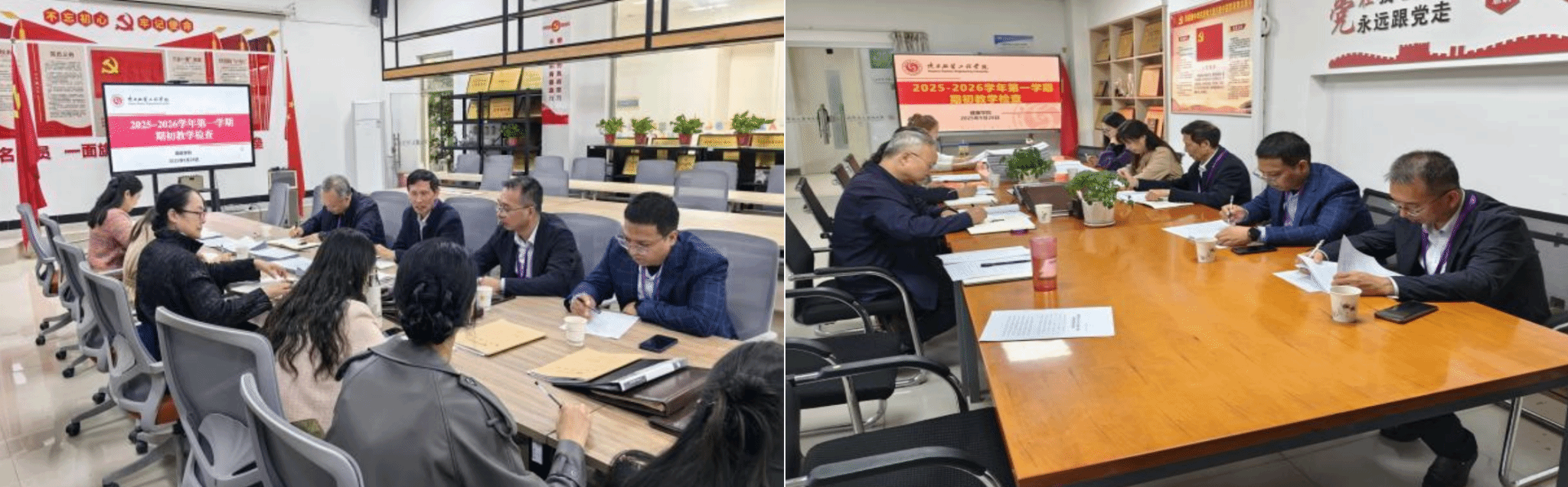为进一步规范教学动态管理,持续提升教学质量,确保新学期教学工作有序开展与有效落实,9月28日,教务处联合校督导委员会深入各教学单位,开展了2025—2026学年第一学期期初教学检查。本次检查由主管教学的副校长潘庆才带队,分为四组,以院部自查与学校抽查并行的机制,重点检查了日常教学秩序的、教研活动情况、实践教学的开展、毕业论文及期末试卷归档等内容。