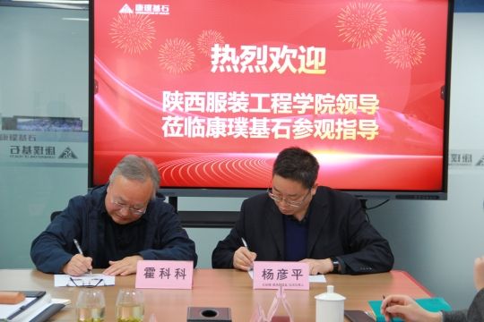 座谈会后,签约挂牌仪式正式举行。在双方代表的共同见证下,霍科科院长与总经理杨彦平分别代表校企双方签订《共建校外实习基地合作协议书》,潘庆才副校长与杨彦平总经理共同为“陕西服装工程学院校外实习基地”揭牌,标志着双方合作正式落地生根。