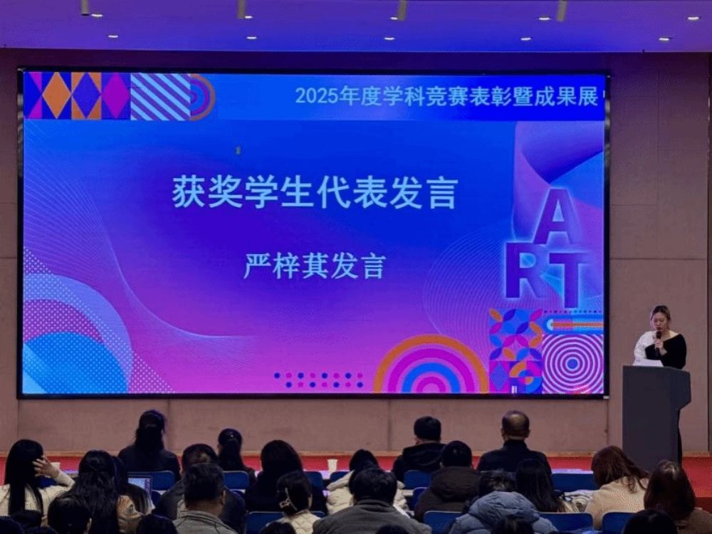 活动开场,以一段时长三分钟的年度回顾视频揭开序幕。每一帧画面皆凝聚着全院师生的智慧与汗水,生动地再现了2025年学院学科竞赛的精彩进程与丰硕成果,赢得了现场的阵阵掌声。