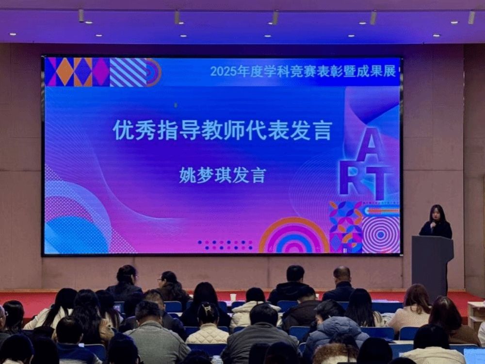 为充分发挥榜样的示范引领效能,进一步营造积极向上、奋勇争先的良好氛围,学生代表严梓萁结合自身备赛的具体过程以及参赛的实际状况,分享了个人成长的感悟与宝贵的备赛经验,为在场同学未来的学习和竞赛提供了具有参考价值的借鉴;教师代表姚梦琪围绕竞赛指导的实践情况,交流了指导的技巧与经验,深入阐释了赛教融合的创新思路,并为学生参与学科竞赛提出了专业的建议,助力学子在未来的赛事中再创新佳绩。
